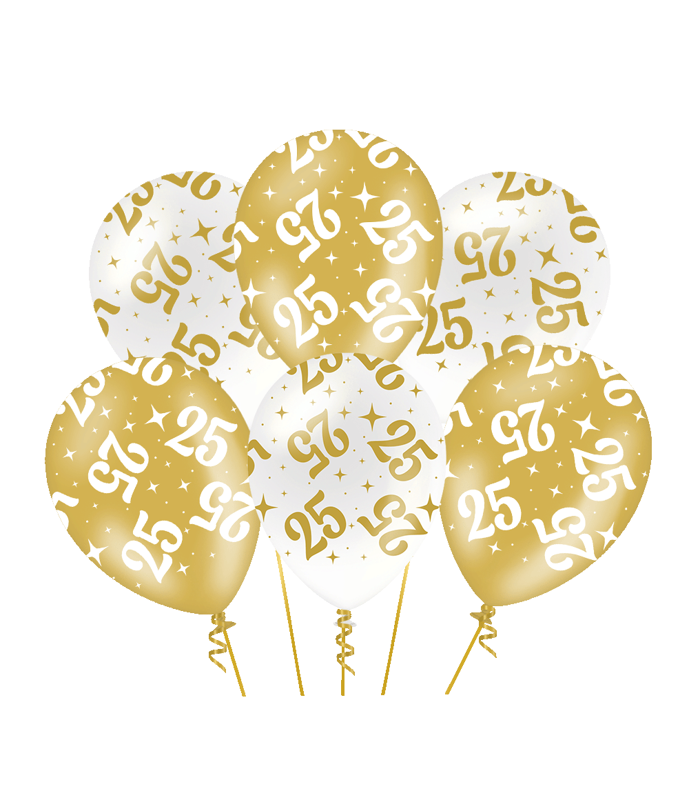 25 Years Balloons White Gold 30cm 6pcs