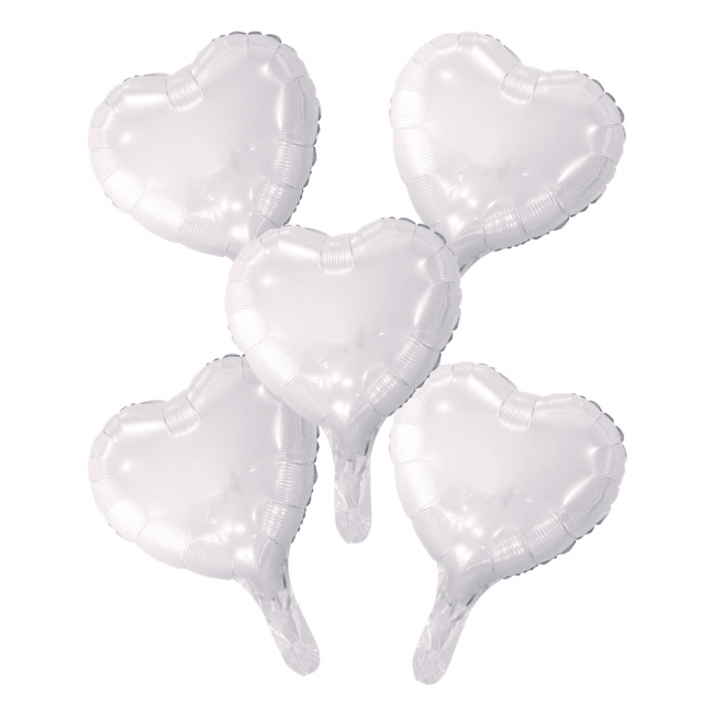 5 Ballons de baudruche cœur avec paille en papier 9" blanc