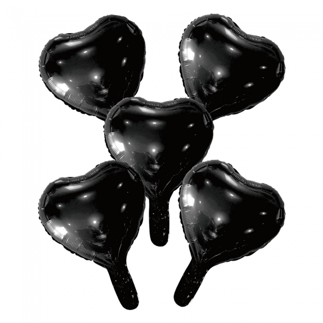 5 Ballons de baudruche cœur avec paille en papier 9" noir