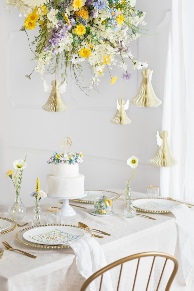 Décoration en papier nid d'abeille Ange ivoire, hauteur environ 24 cm.