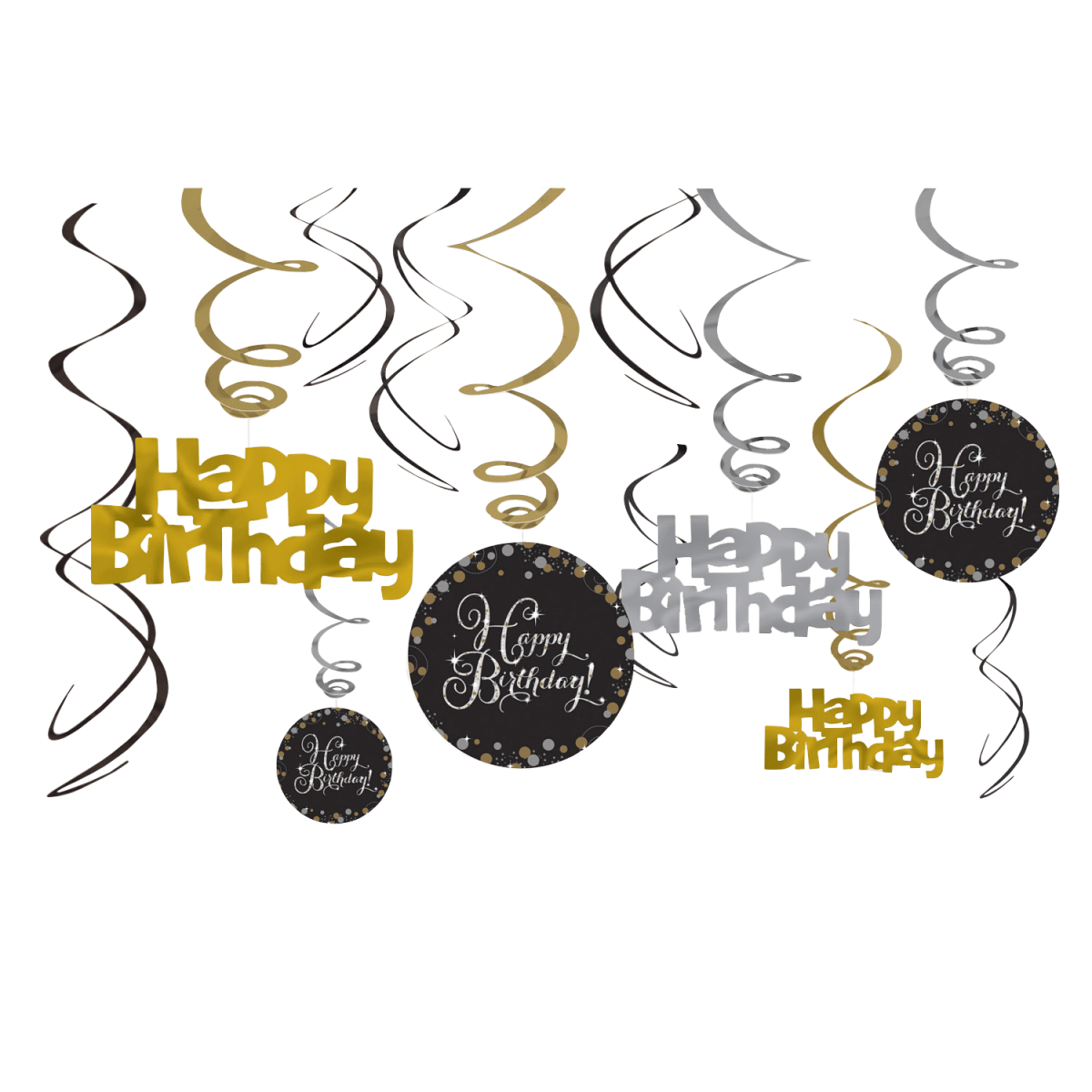 Décoration suspendue Happy Birthday Or 61cm 12pcs
