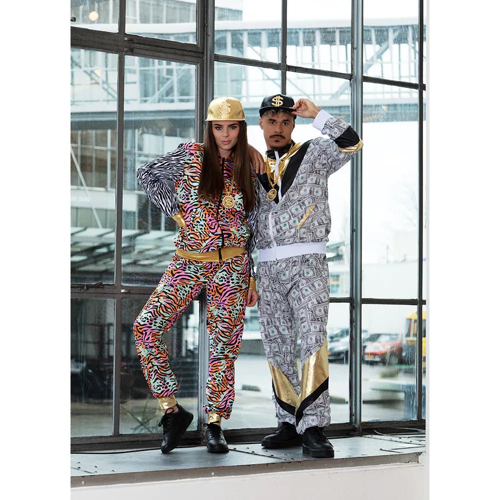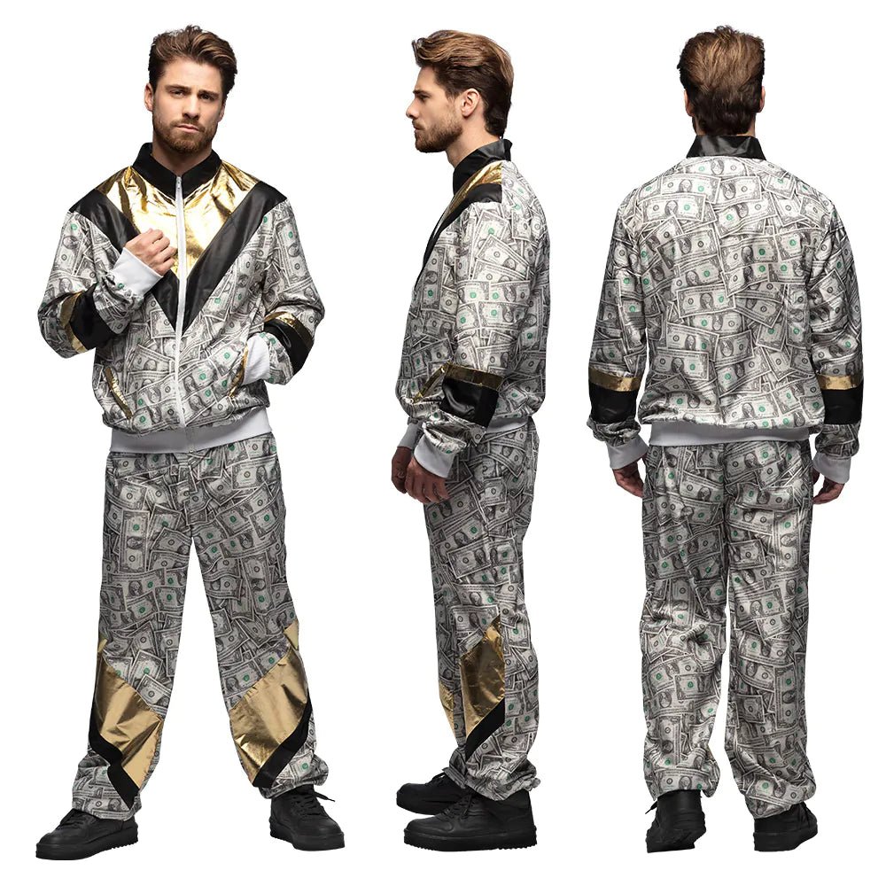 Qu'il soit destiné à une tenue de proxénète ou à une tenue immonde des années 90, ce survêtement US Dollar Dude est le choix parfait. L'impression audacieuse de billets de banque et les accents dorés font de ce costume Shell un véritable accroche-regard pour le carnaval ou toute autre fête à thème rétro. Ce costume immonde pour homme se compose d'une veste et d'un pantalon assortis et possède des poches pratiques sur lesquelles on peut par exemple ranger des clés ou un téléphone.