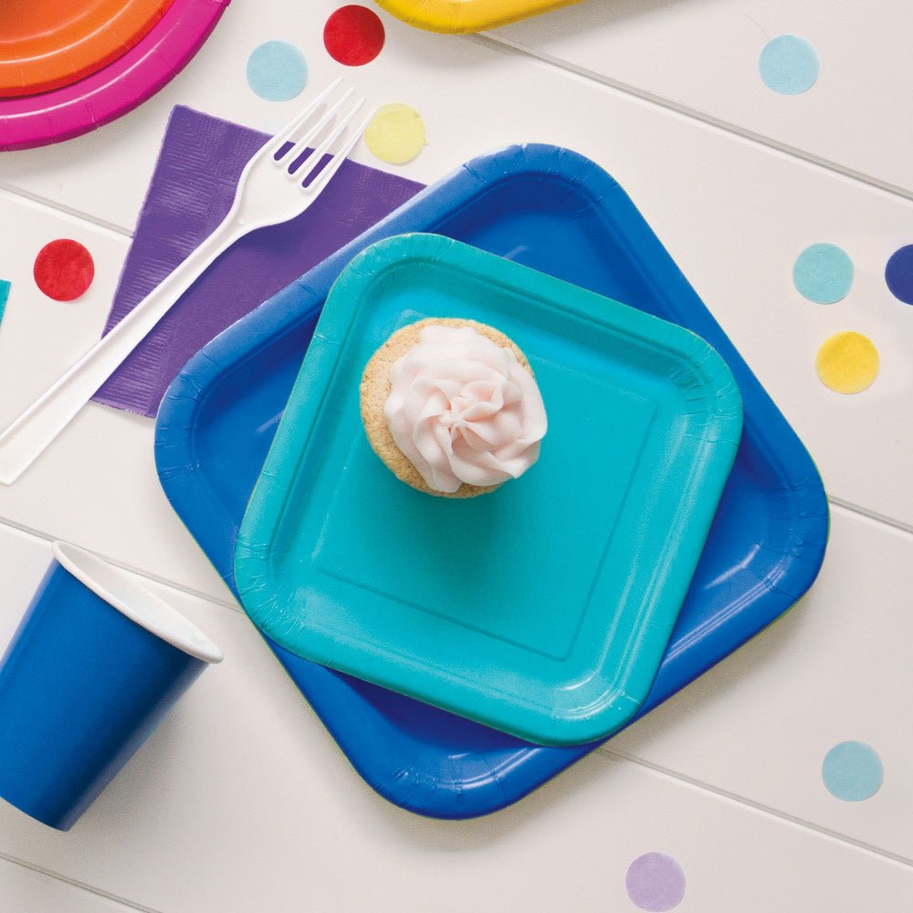 Assiettes carrées bleu 23cm 14pcs