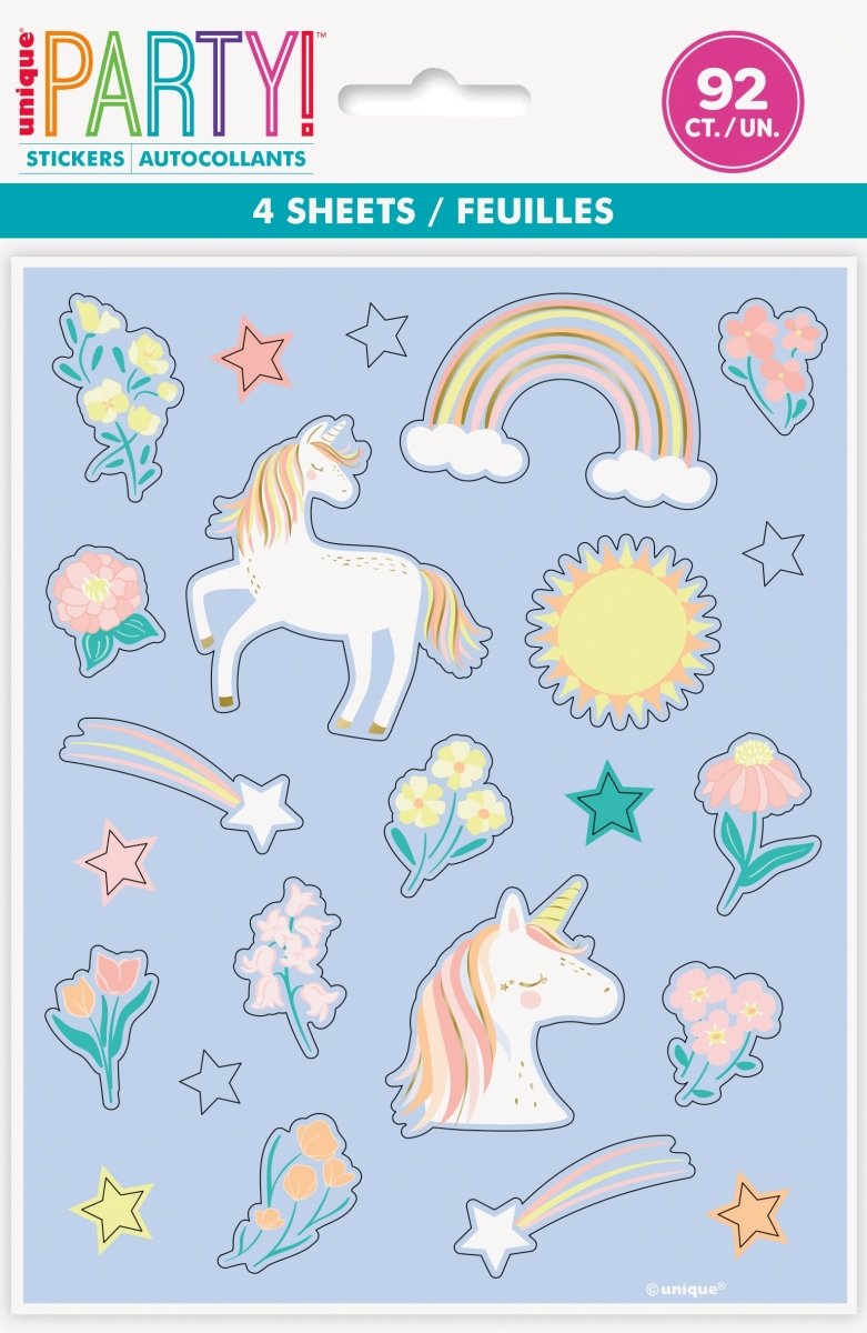 Contenu de l'emballage : autocollants licorne