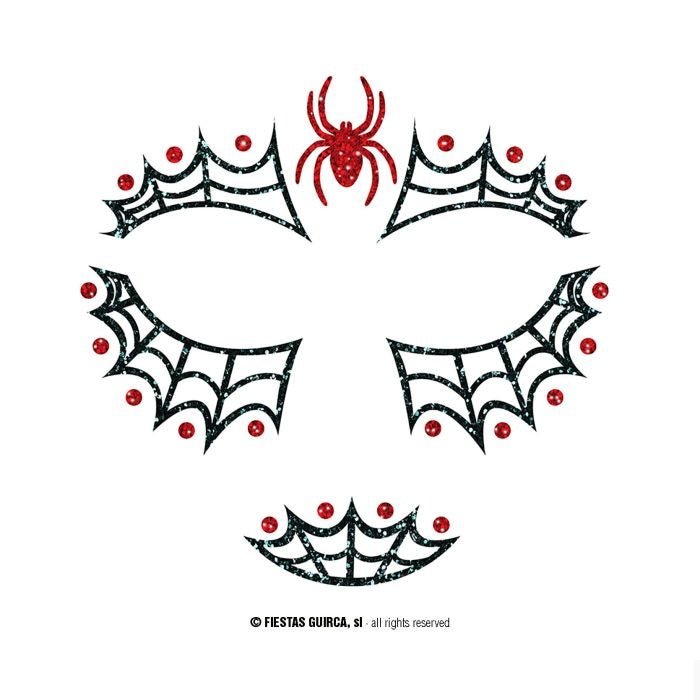 Autocollants pour le visage d'Halloween Araignée pailletée 20cm