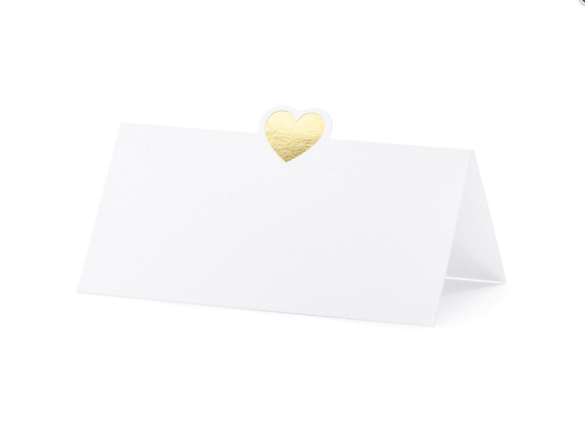 Contenu:Porte-noms en papier blanc avec cœur en métal doré, taille après assemblage env. 10 x 5cm. (1 PKT/10 pièces)