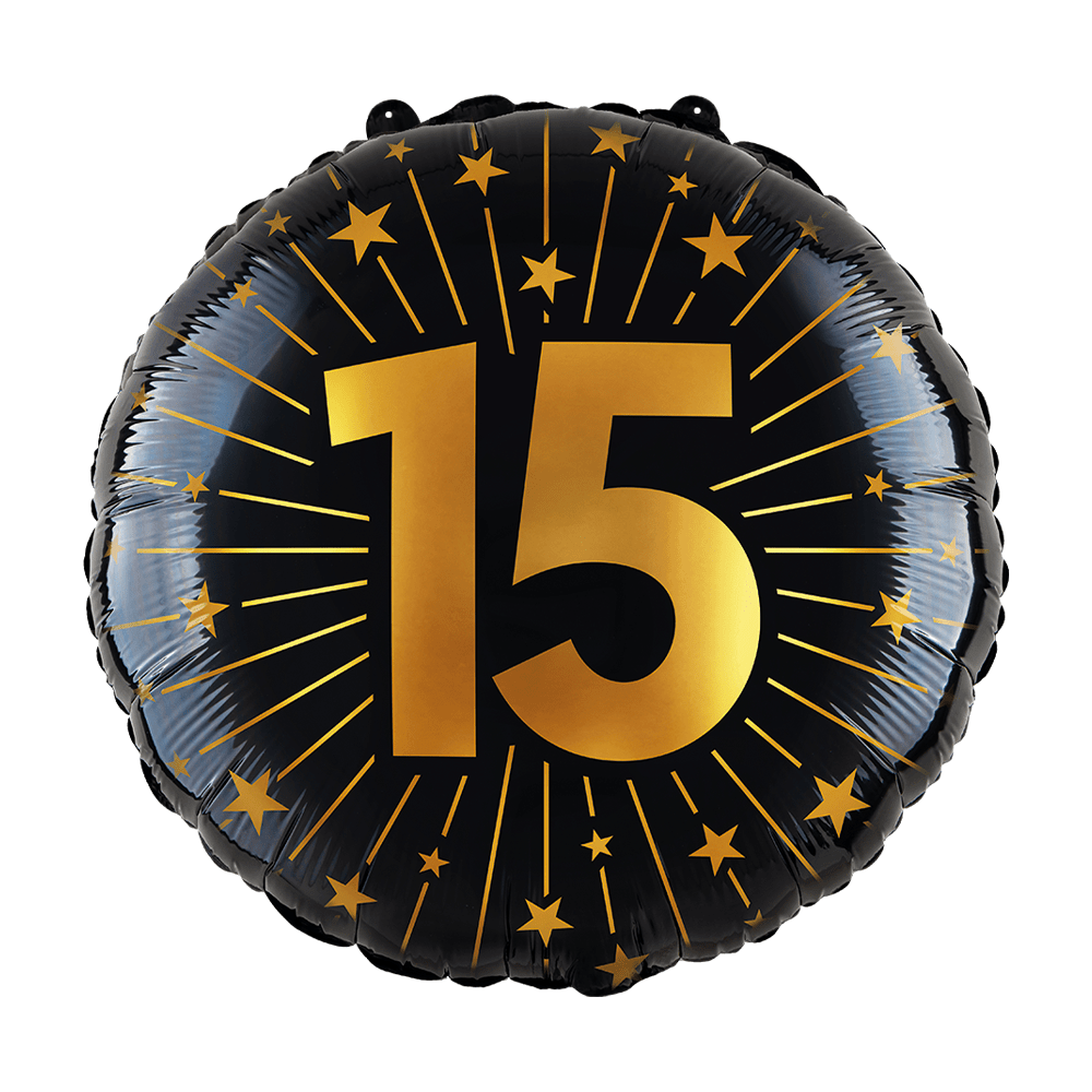 Ballon à l'hélium 15 ans Or Noir Vide 45cm