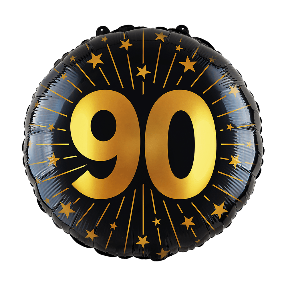90 ans Ballon à l'hélium Noir Or Vide 45cm