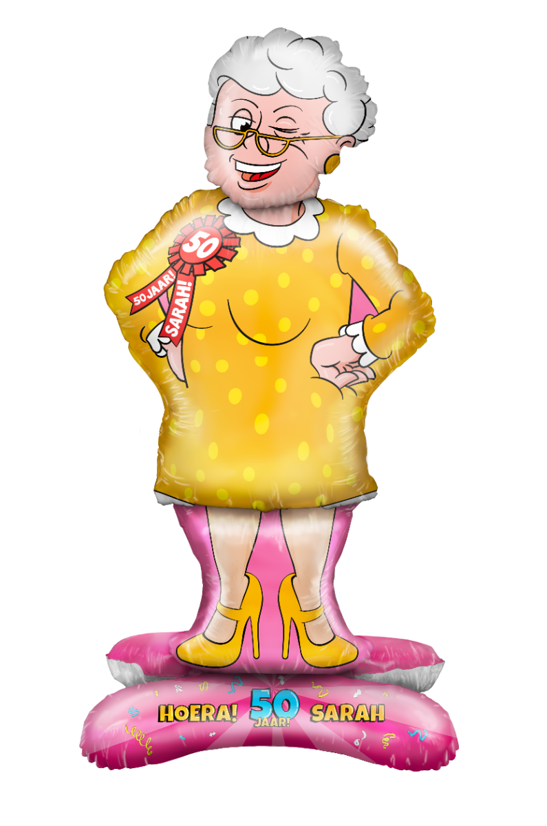 Rends le 50e anniversaire encore plus festif avec ce ballon en papier d'aluminium accrocheur poupée Sarah 50. Grâce à sa taille compacte, le ballon est facile à gonfler, à poser ou à suspendre - sans tracas. Parfait comme décoration lors d'une fête de Sarah &et d'Abraham.