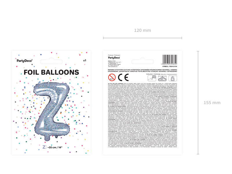 Ballon de baudruche Lettre Z Holographique Vide 35cm