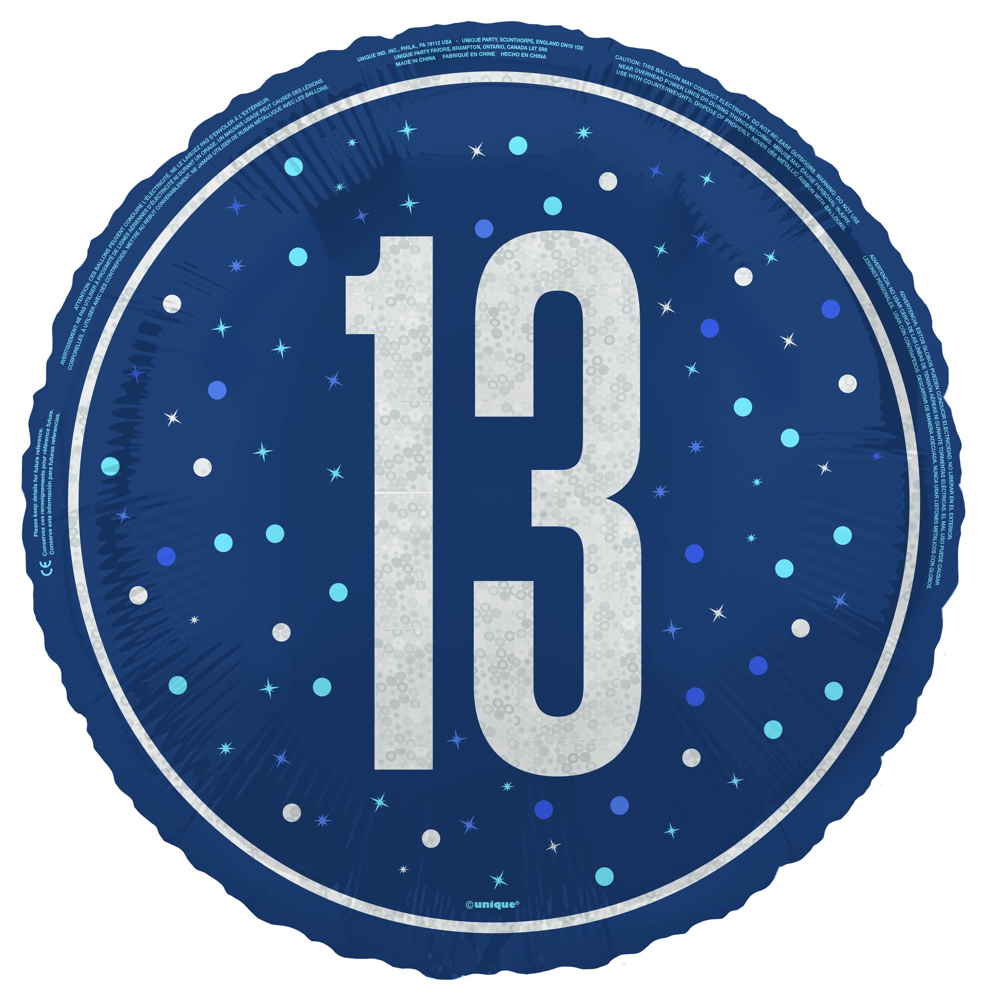13 ans Ballon à hélium bleu vide 45cm