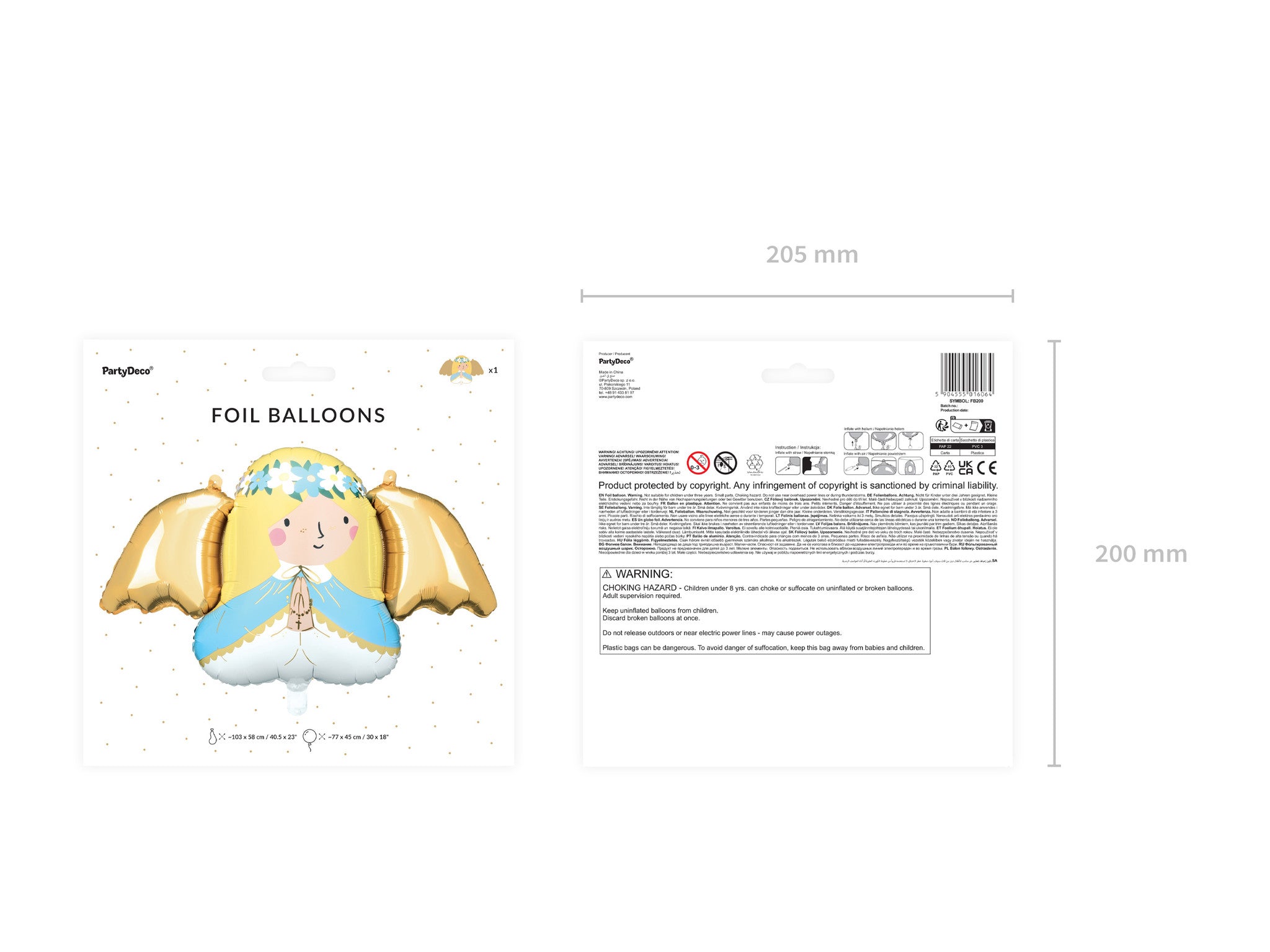 Ballon de baudruche Angel, mélange de couleurs, dimensions pour le gonflage environ. 103 x 58 cm (40,5 x 23''), dimensions après gonflage env. 77 x 45 cm (30 x 18''). Inflottable à l'air et à l'hélium. Le set comprend une paille.