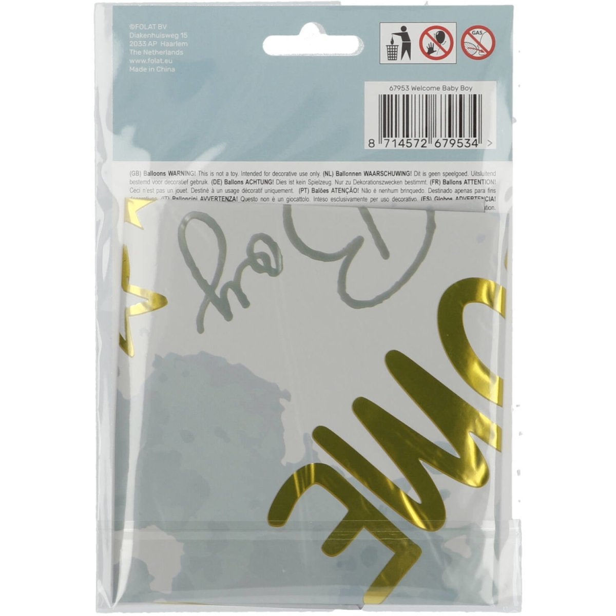 Ballon à l'hélium Welcome Baby Boy Bleu Vide 45cm