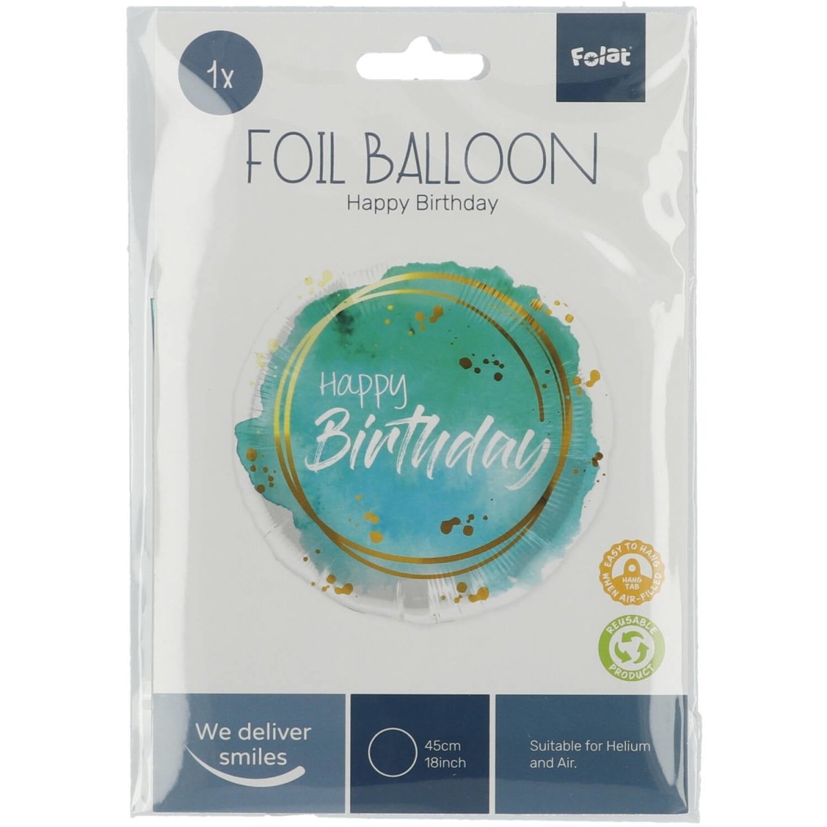 Folat Ballon de baudruche Anniversaire Aquarelle Aqua - 45 cm. Contenu : 1 ballon de baudruche en papier d'aluminium. Couleur : bleu. À utiliser par exemple lors des fêtes/occasions suivantes : Anniversaire et Fête d'enfants. Ce ballon en papier d'aluminium mesure 18 pouces/45 cm. L'article est fabriqué en feuille d'aluminium.