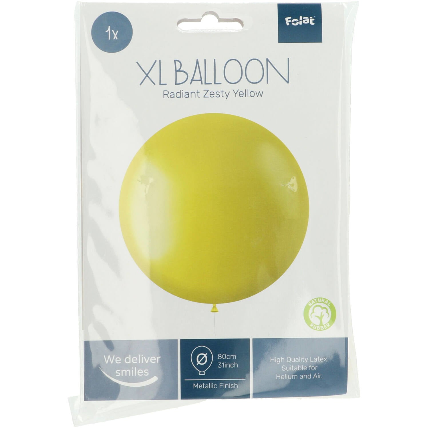 Ballon XL Radiant Zesty Yellow Metallic - 78 cm. Contenu : 1 ballon en latex. Couleur : jaune. Effet de couleur : Métallique. Par exemple, à utiliser lors des fêtes/occasions suivantes : Anniversaire, Fête d'enfants et Fête à thème. Le ballon mesure 31 pouces/78 cm. L'article est fabriqué en latex.