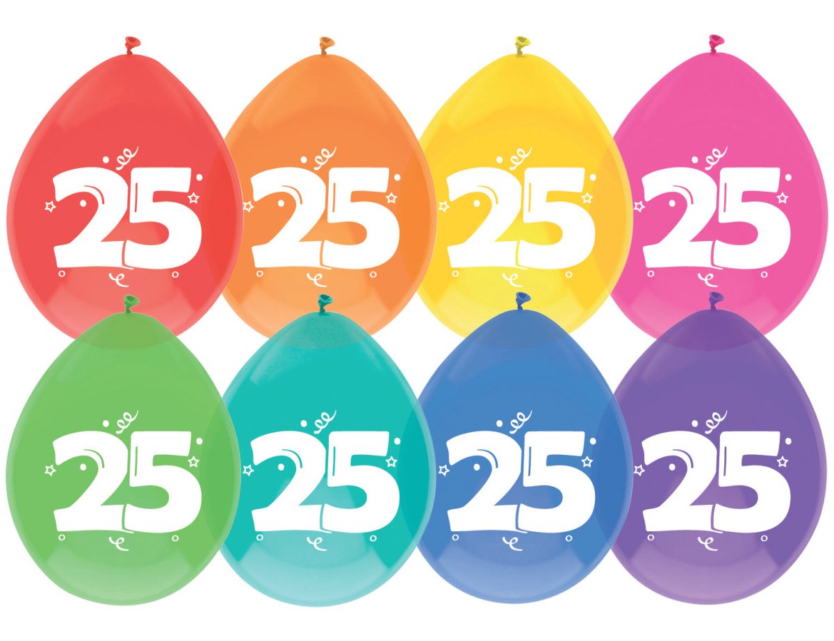 Ballons 25 ans colorés 30cm 8pcs