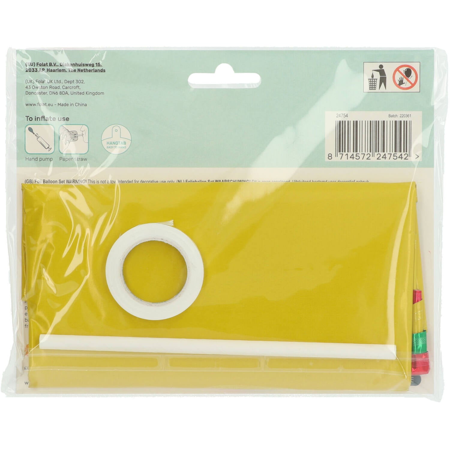 Inclus: paille pour gonfler les ballons et env. 4 mètres de corde