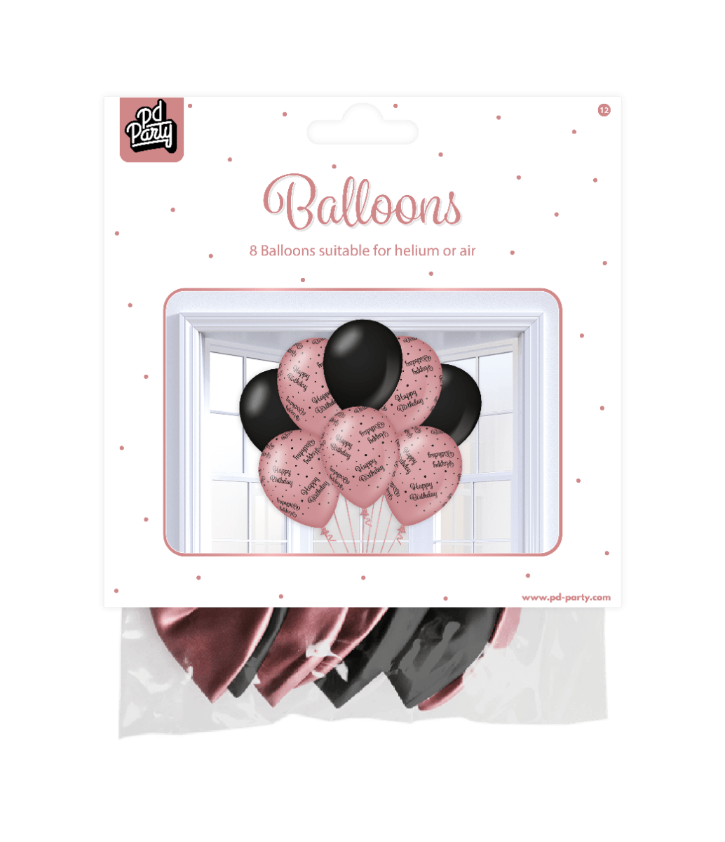 Ballons Happy Birthday Rose Noir 30cm 8pcs