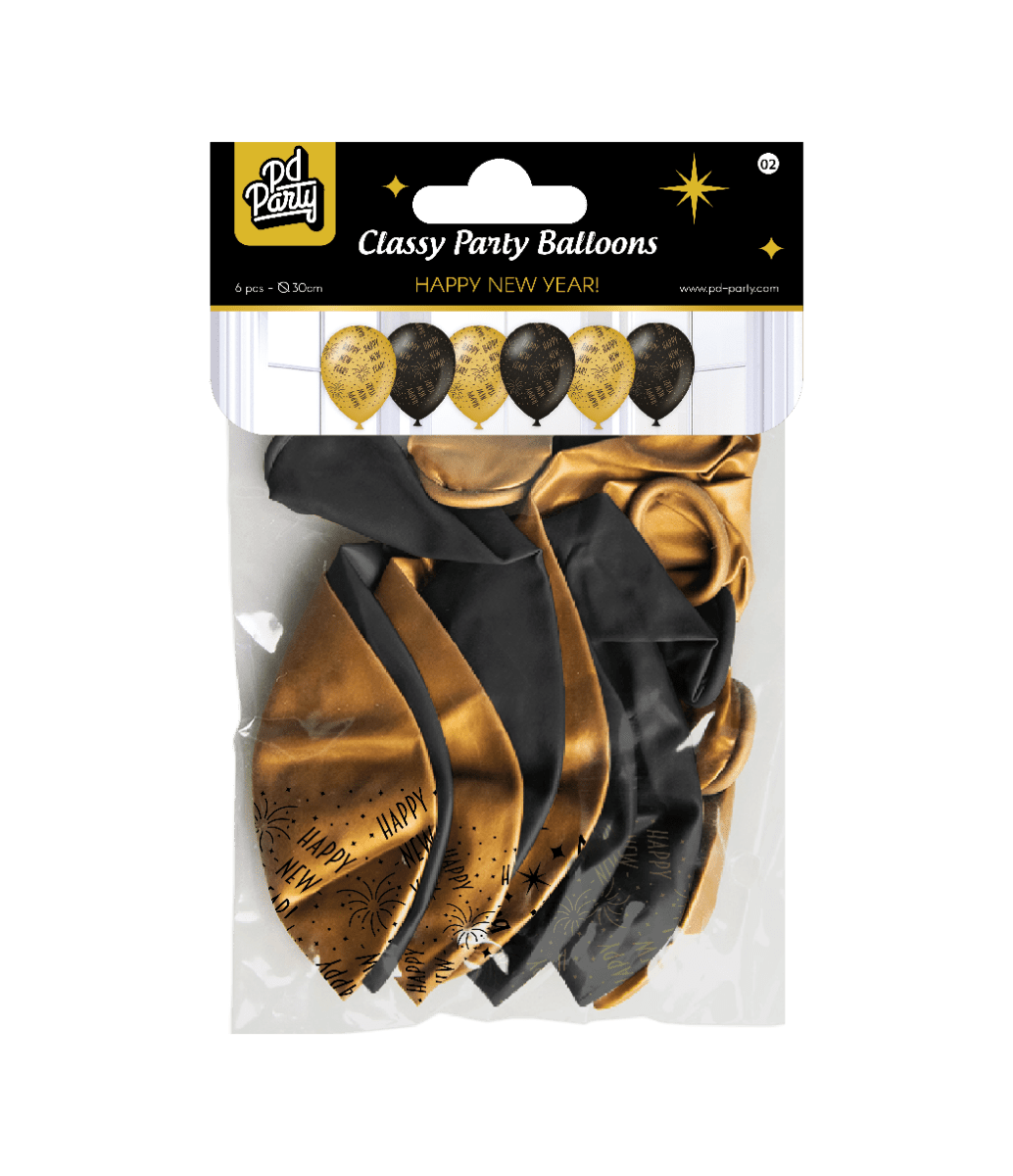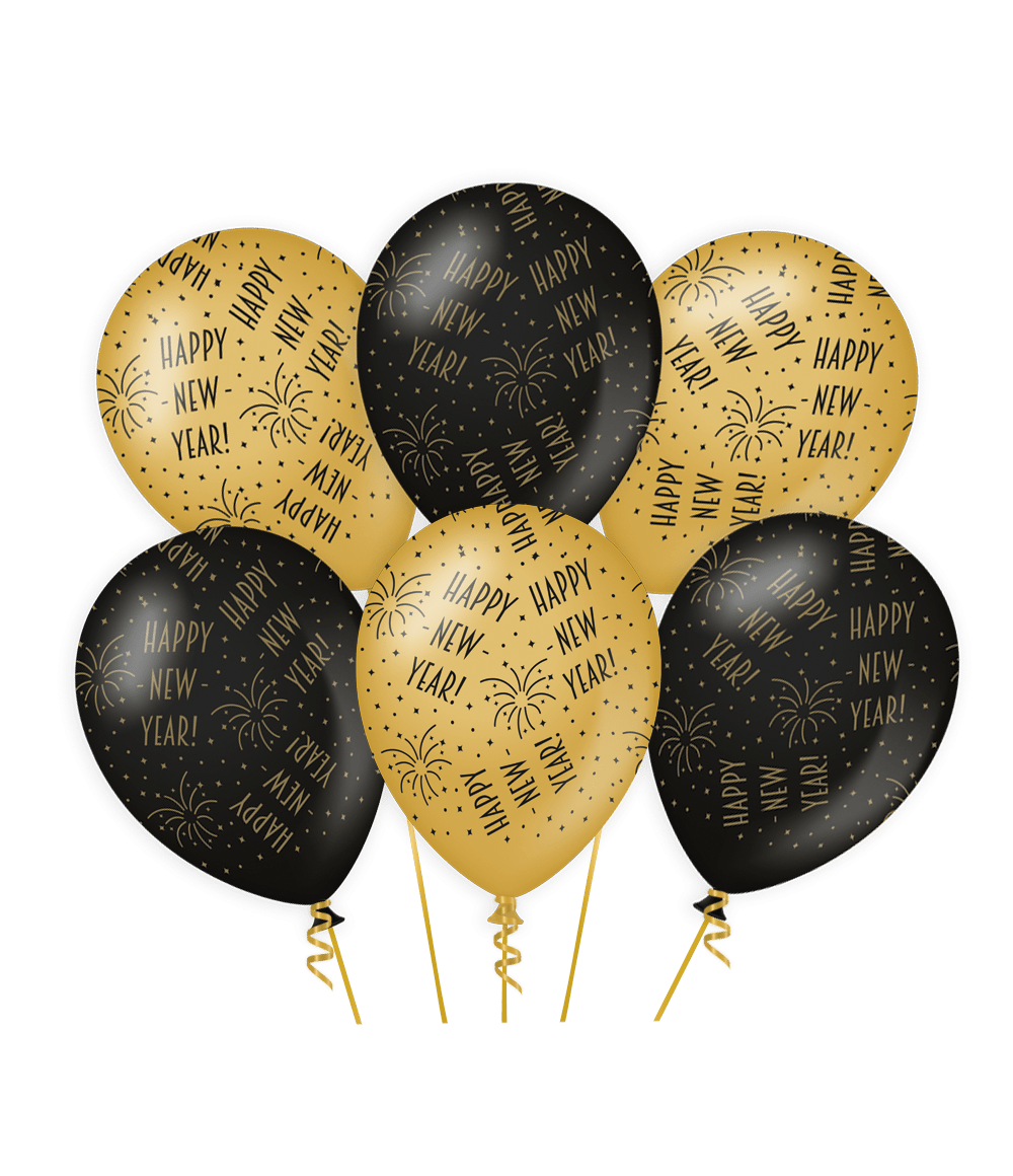 Ballons Bonne Année Or Noir 30cm 6pcs