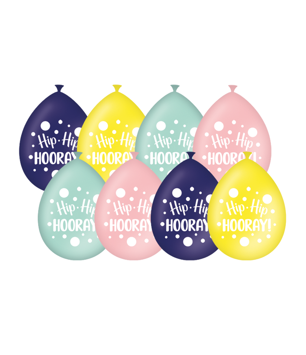 Ballons Hip Hip Hooray 30cm 8pcs