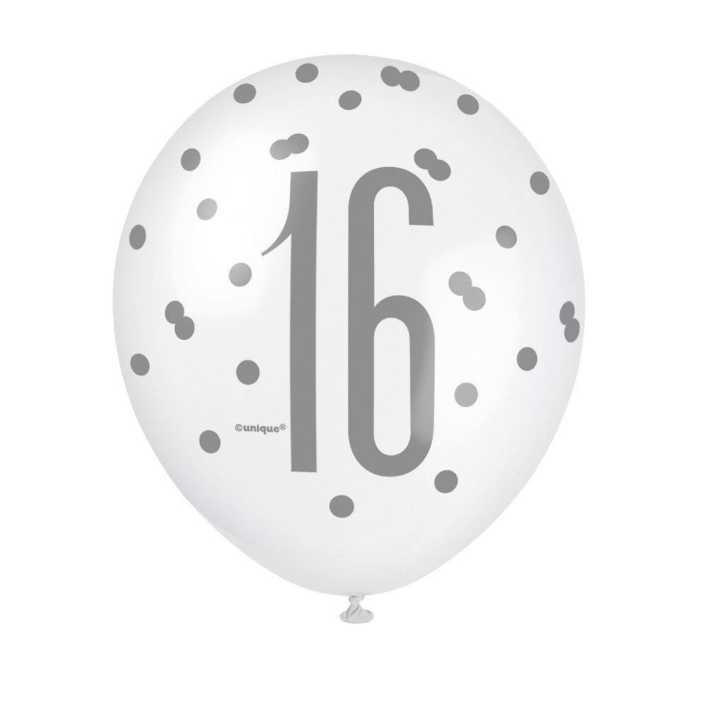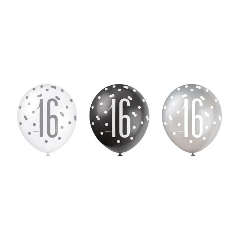 Ballons de baudruche 16 ans Dots Black 30cm 6pcs