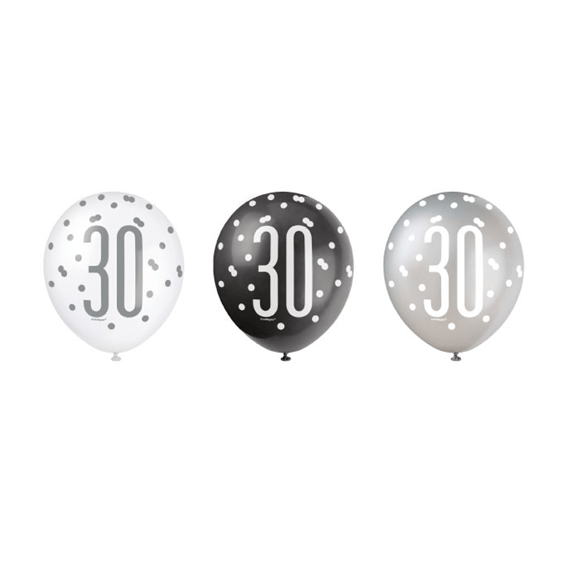 Ballons 30 Years Dots Black 30cm 6pcs