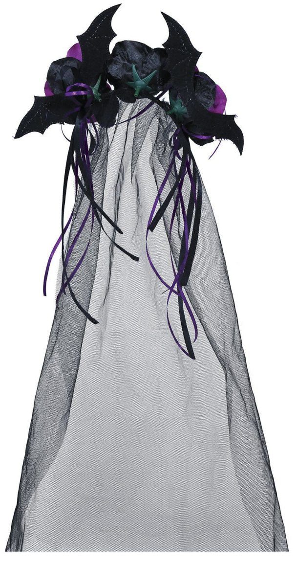 Bandeau d'Halloween noir, fleurs violettes et voile
