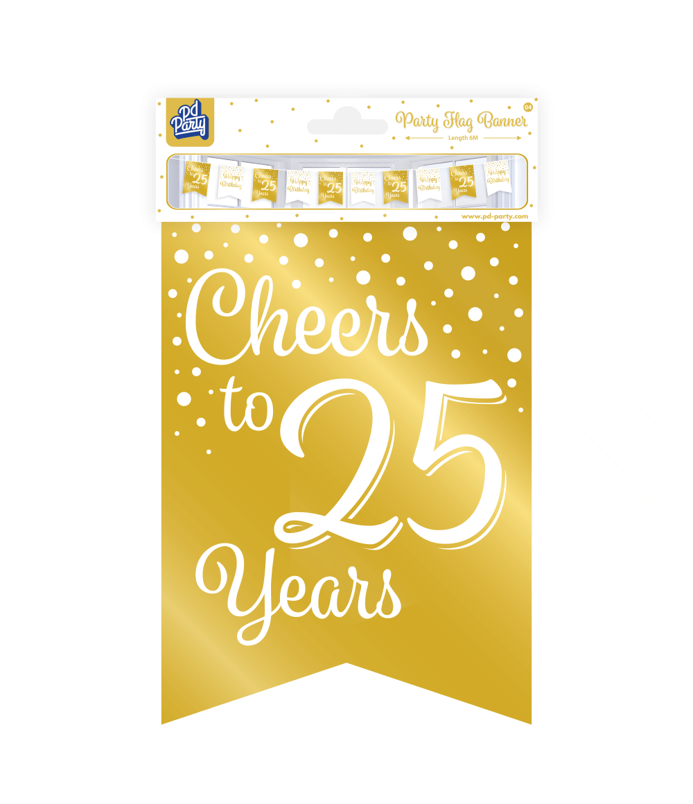 Contenu de l'emballage:Party flag banner gold/white - 25