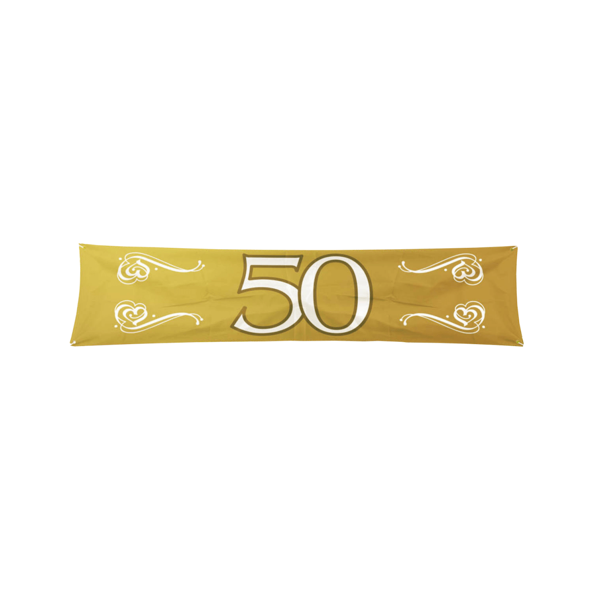 Bannière du jubilé d'or des 50 ans - 180x40cm. Contenu : 1 bannière. Couleur : couleur or. À utiliser par exemple lors des occasions de célébration/fête suivantes : Anniversaire, Fête. Dimensions de cet article : 180x40cm. Cet article est fabriqué en polyester.
