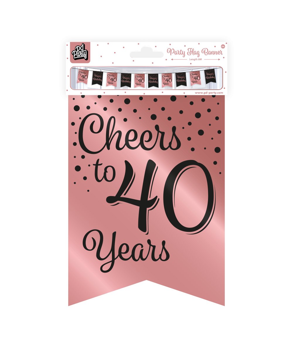 Bannière 40 ans Rose Noir 6m