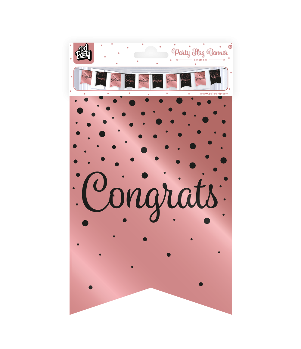 Bannière Félicitations Rose Noir 6m