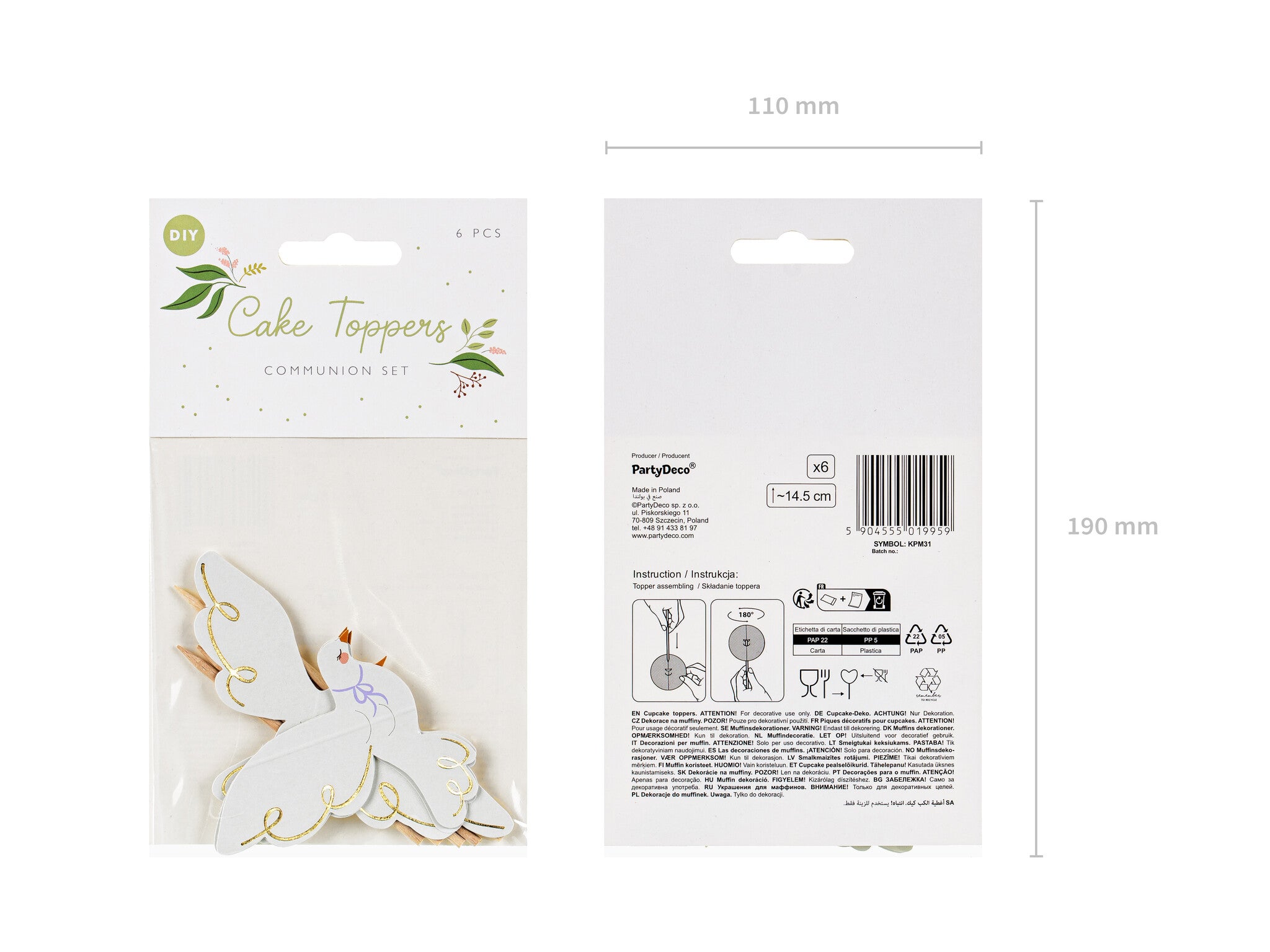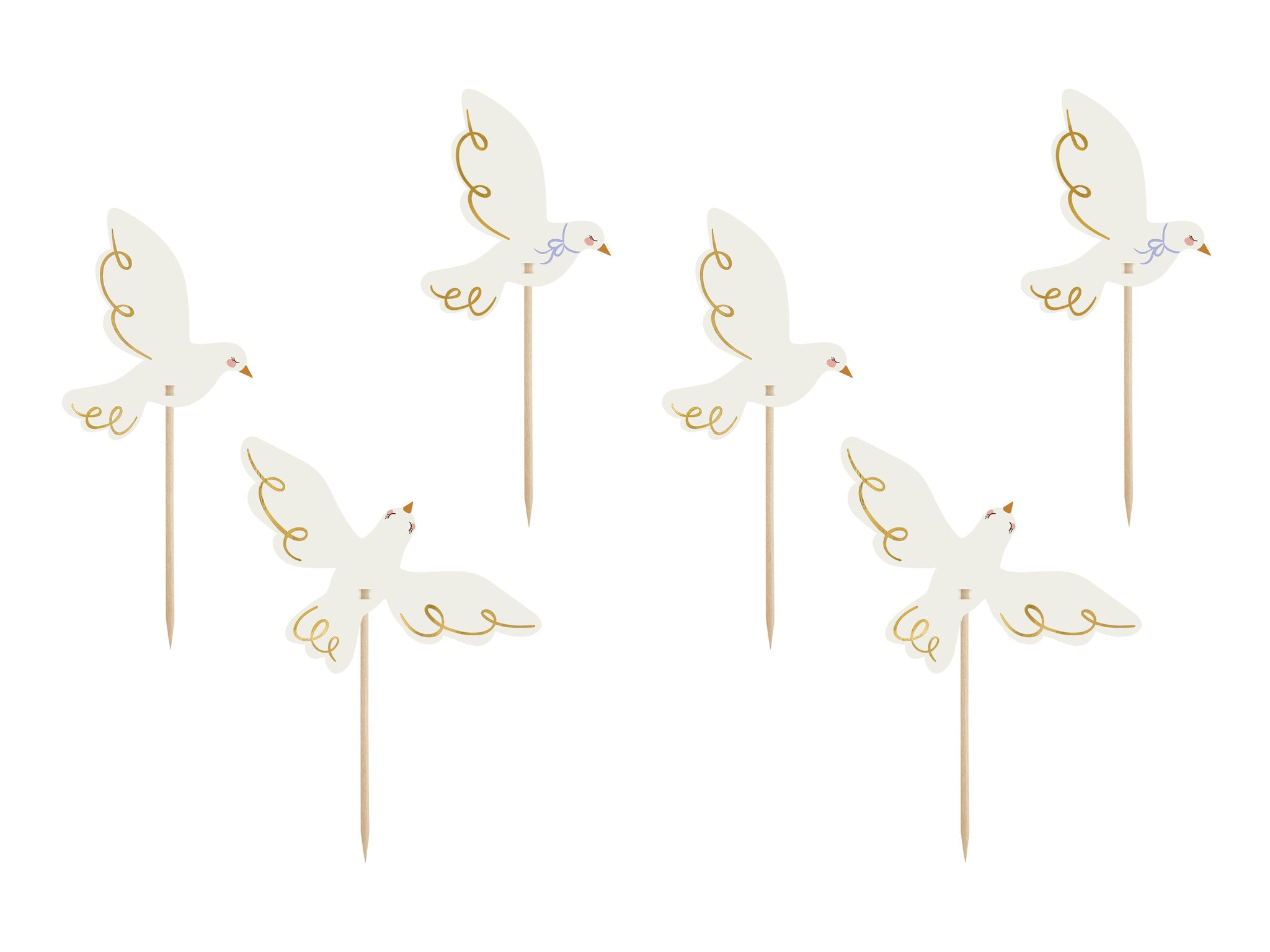 Décorations pour muffins - Colombes, le set contient 3 motifs de 2 pièces, mélange de couleurs, hauteur env. 14,5 cm. Produit pour l'auto-assemblage.