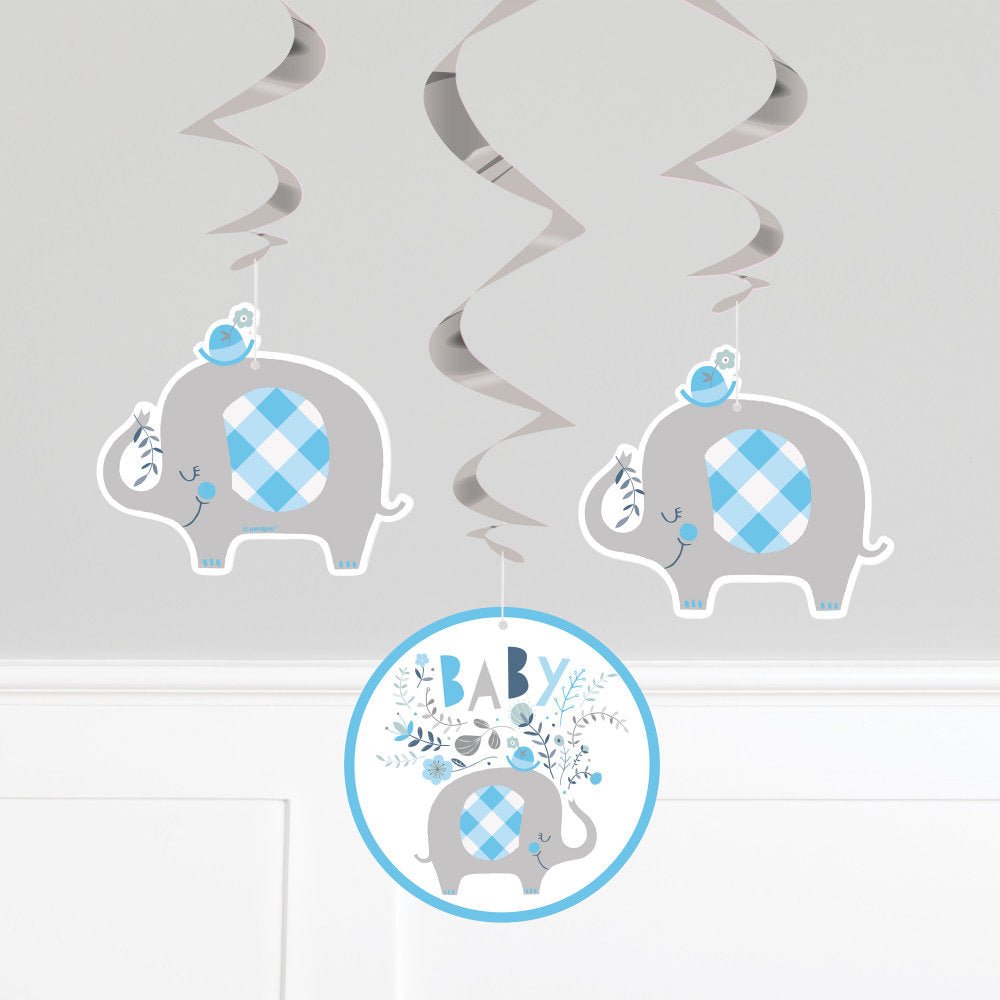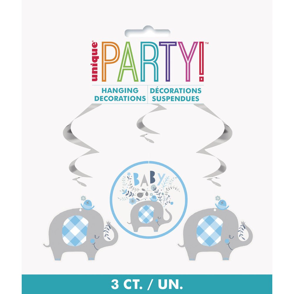 Décoration suspendue bébé éléphant bleu 66cm 3pcs