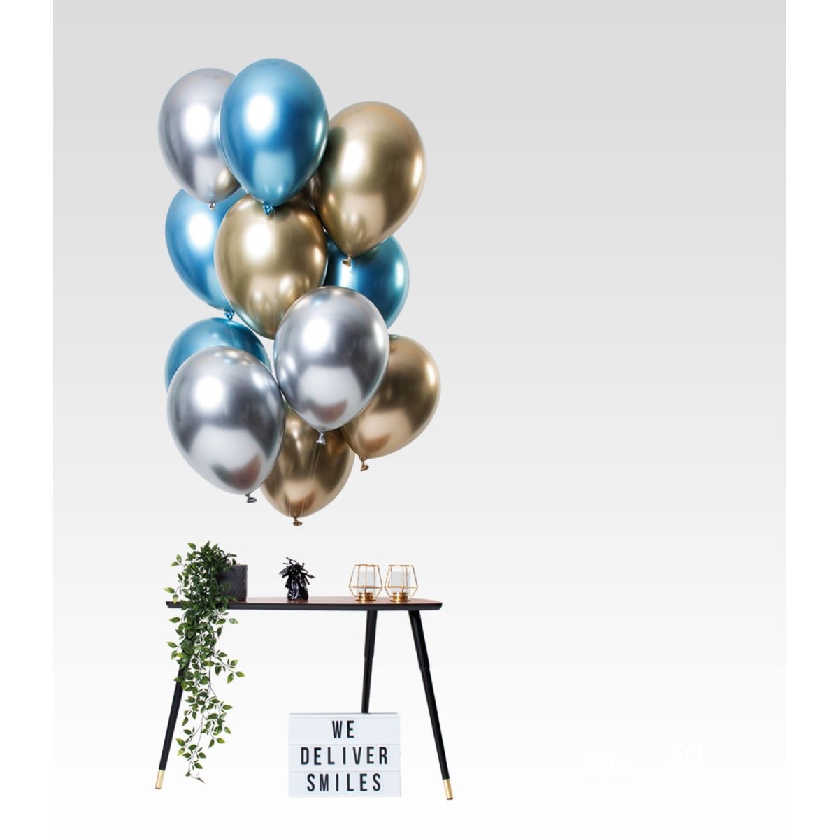 Ballons de baudruche argent, bleu et anthracite Mix Chrome 33cm 12pcs