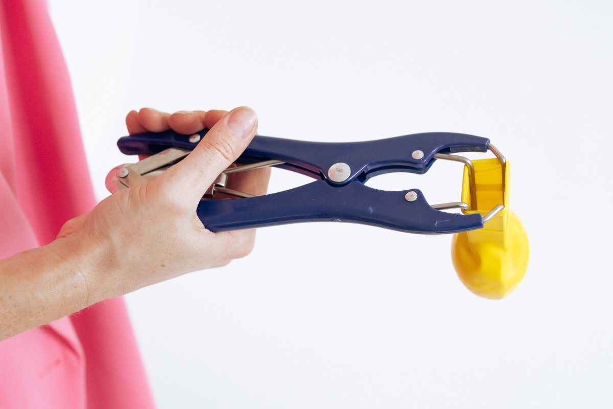 Tu recevras 1 pince de dilatation de ballons. Le produit mesure 9,5x21,3cm et convient pour gonfler et remplir les ballons.