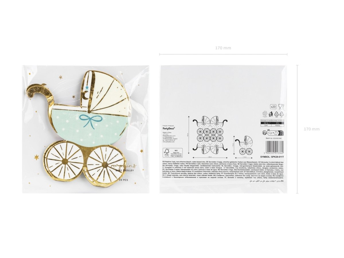 Serviettes de table bleues Porte-bébé 14cm 20pcs