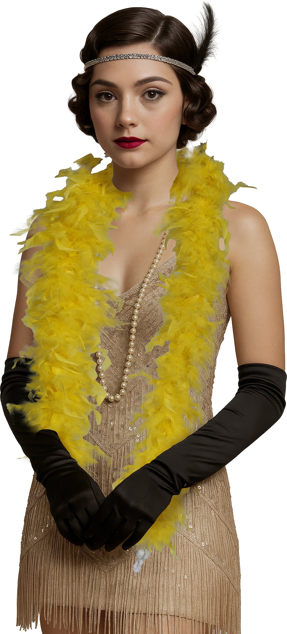 Apporte du soleil et de l'énergie à ta tenue avec ce boa de plumes jaunes. Idéal pour les carnavals, les soirées déguisées, les défilés ou les représentations sur scène. Le boa est léger, doux et ajoute de la festivité et de l'éclat à n'importe quel look.
