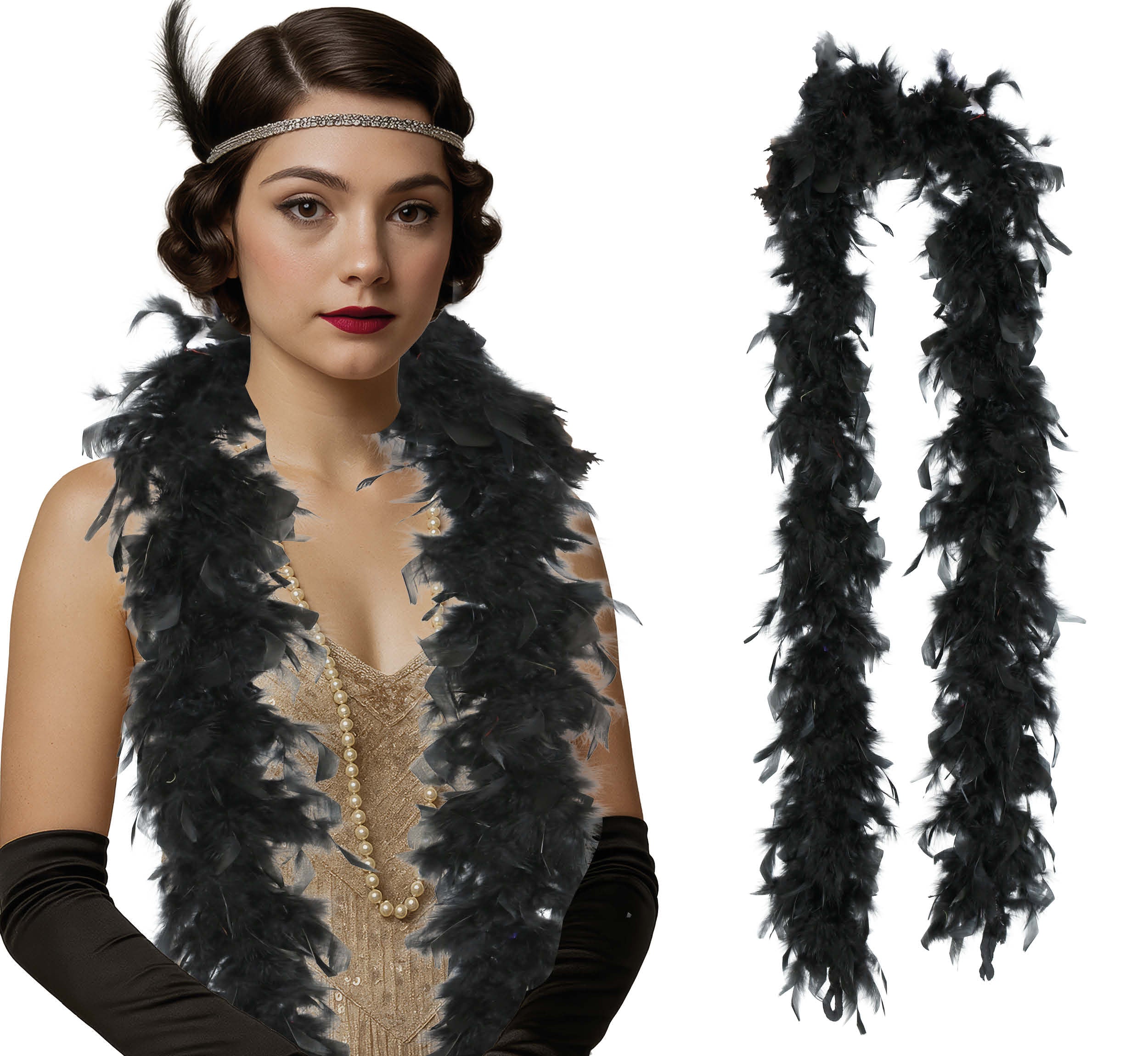 Ajoute du style et de la classe à ta tenue avec ce boa de plumes noires. Parfait pour les fêtes, les galas, les soirées à thème, les carnavals ou les représentations sur scène. Le boa est léger, doux et crée instantanément un look chic et festif.