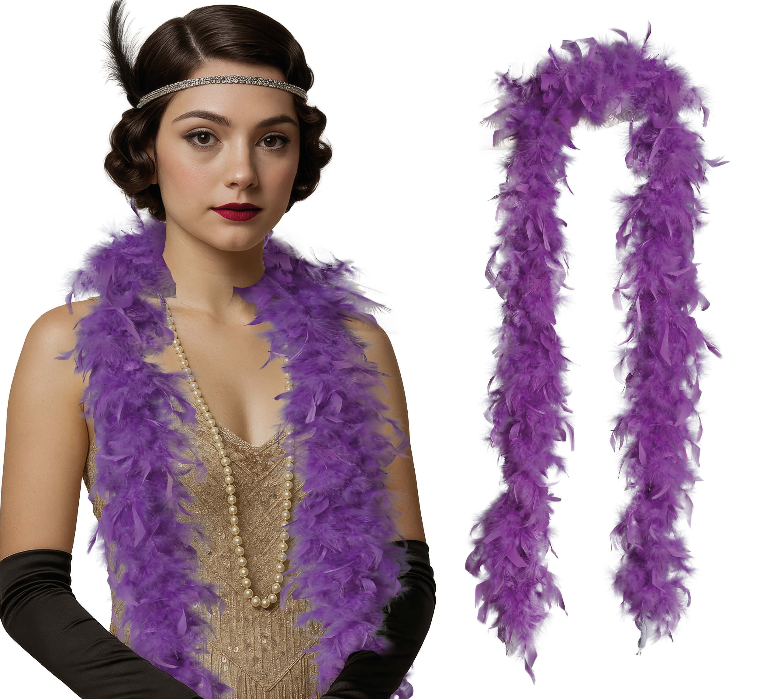 Ajoute une touche d'élégance et de couleur à ta tenue avec ce boa de plumes violettes. Parfait pour les fêtes, les soirées à thème, le carnaval ou les représentations sur scène. Le boa est léger, doux et crée instantanément un look élégant et ludique.