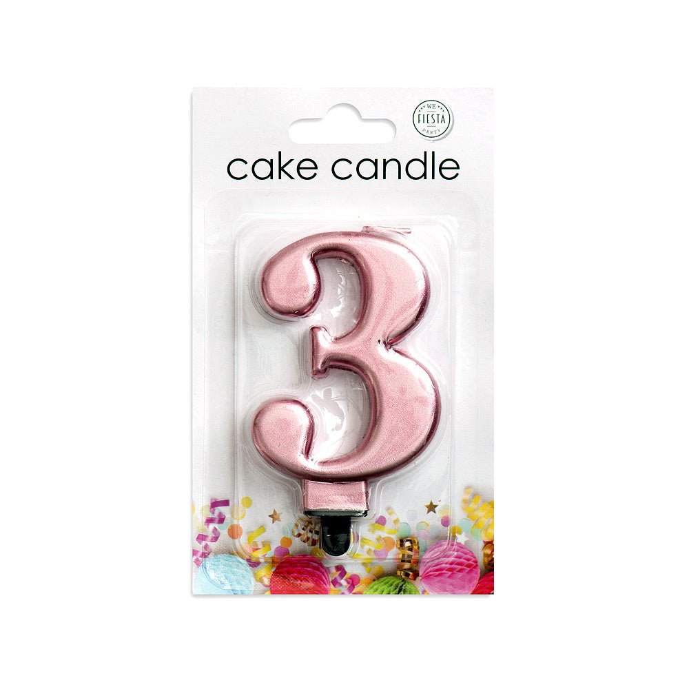 Bougie 3 ans or rose métallisé 8cm