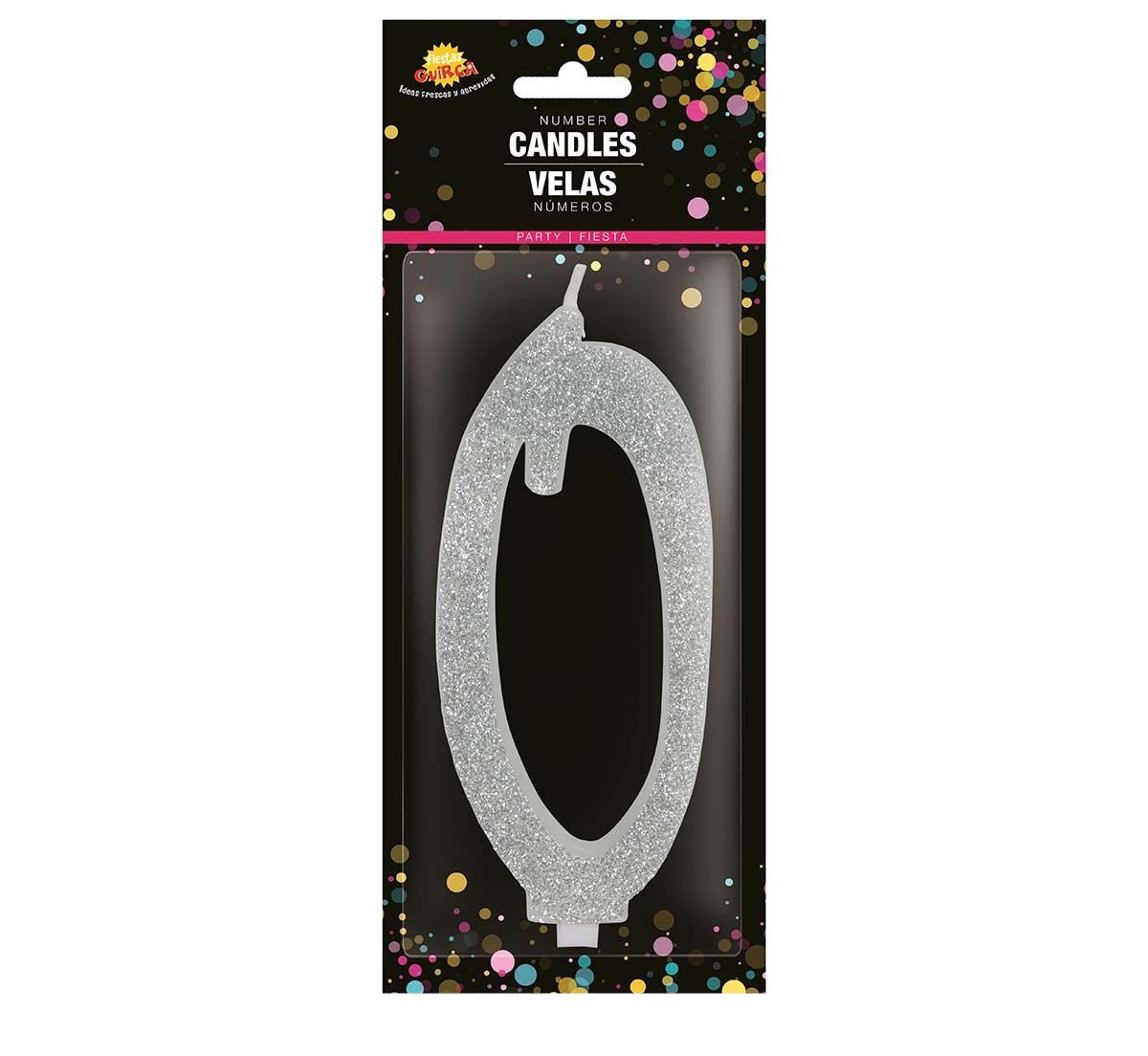 Bougie argentée 0 an pailletée 12.5cm