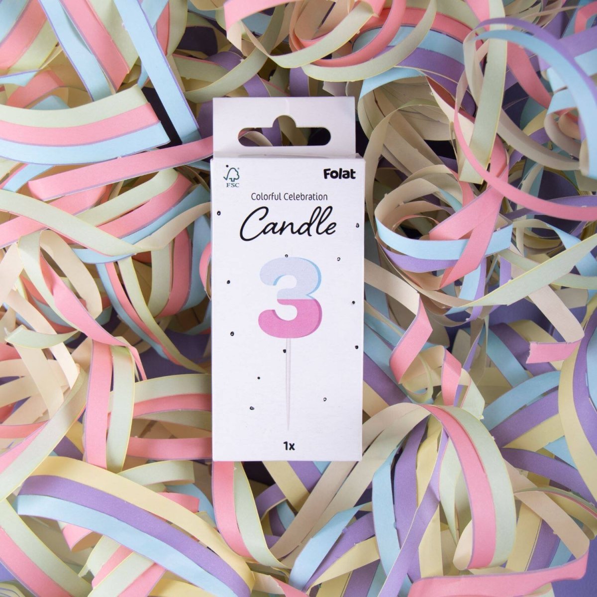 Comme une célébration sur le gâteau ! Bougie - Stripetastic - Numéro 3. Contenu : 1 bougie numérotée. À utiliser par exemple lors des fêtes/occasions suivantes : Anniversaire, Fête des enfants, Anniversaire. Cette bougie a la forme du chiffre 3. Le haut est bleu clair et le bas est rose mauve. Cette bougie mesure environ 5 cm de haut et 8 mm d'épaisseur. La longueur totale de la bougie (y compris le piqueur, sans la mèche) est d'environ 9 cm. Cet article est fabriqué en cire.