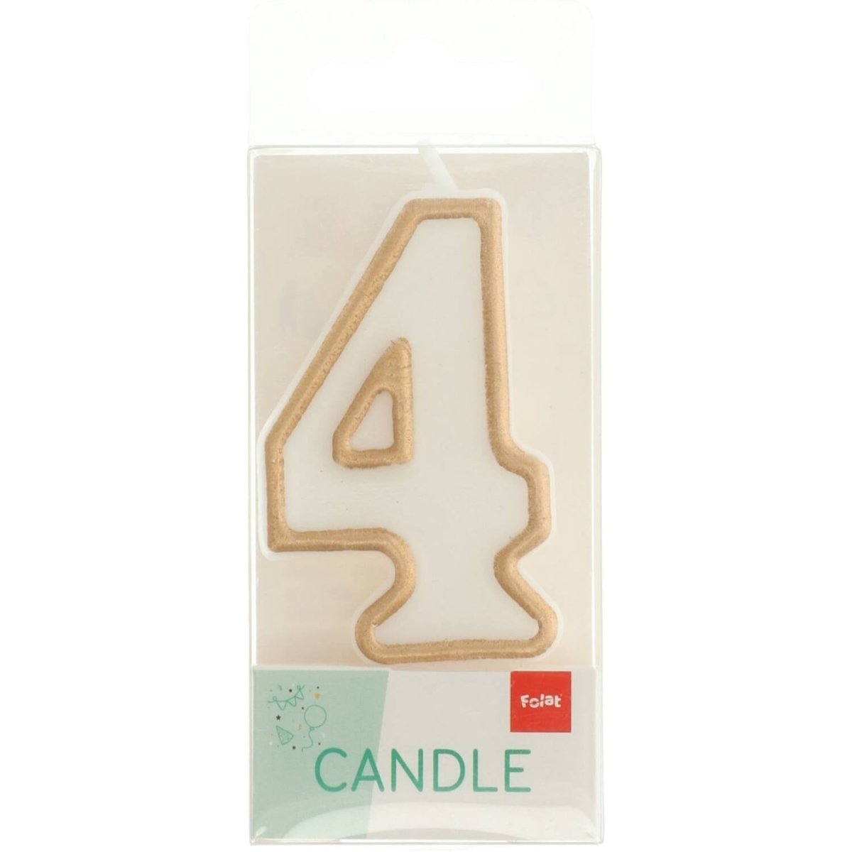 Bougie Simply Chic Gold Figure 4, 9 cm. Contenu : 1 bougie. Couleur : or. À utiliser par exemple lors des fêtes/occasions suivantes : Anniversaire, Fête des enfants et Anniversaire. Cette bougie mesure environ 9 cm de haut. L'article est fabriqué en cire.