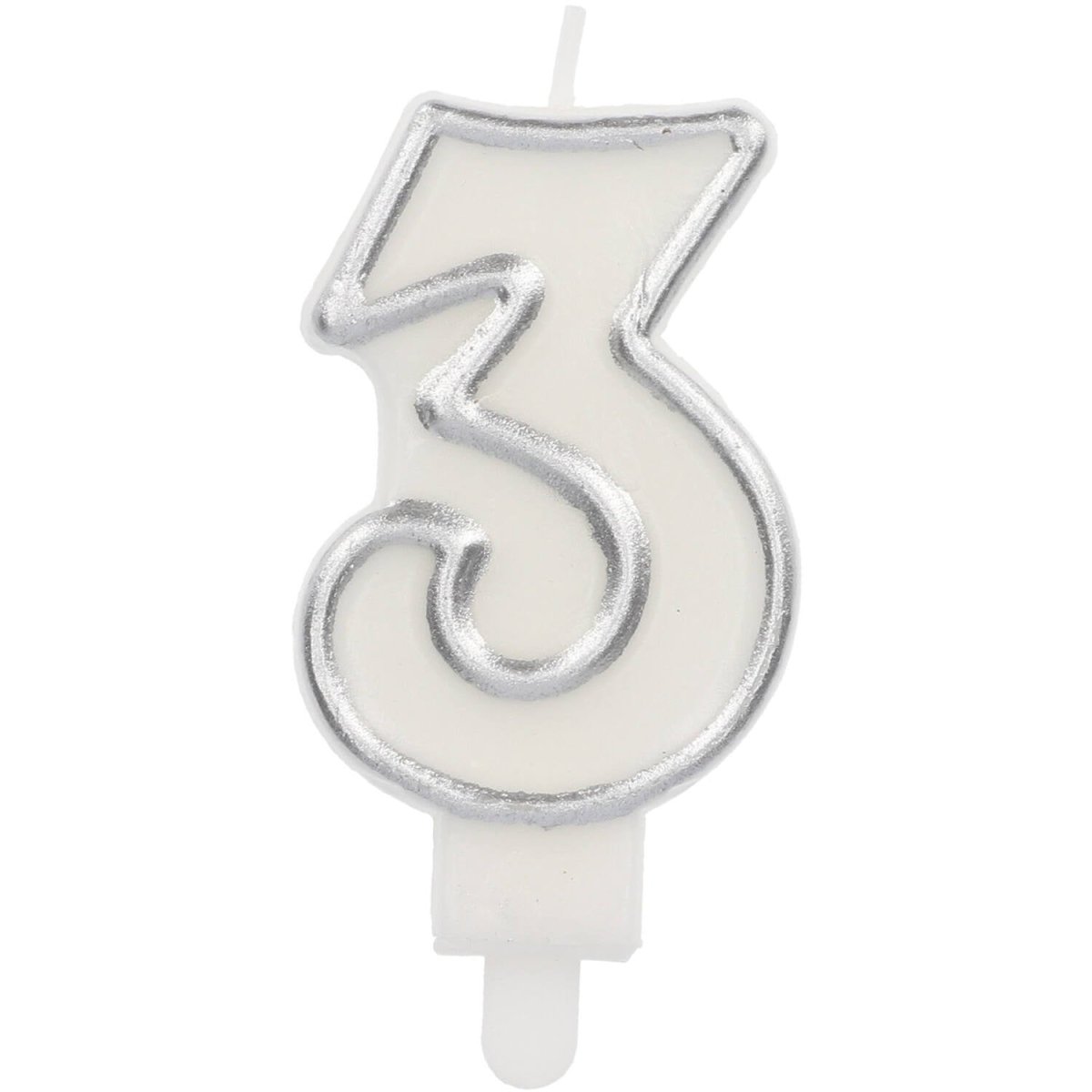 Bougie Simply Chic Silver Figure 3, 9 cm. Contenu : 1 bougie. Couleur : argent. À utiliser par exemple lors des fêtes/occasions suivantes : Anniversaire, Fête des enfants et Anniversaire. Cette bougie mesure environ 9 cm de haut. L'article est fabriqué en cire.