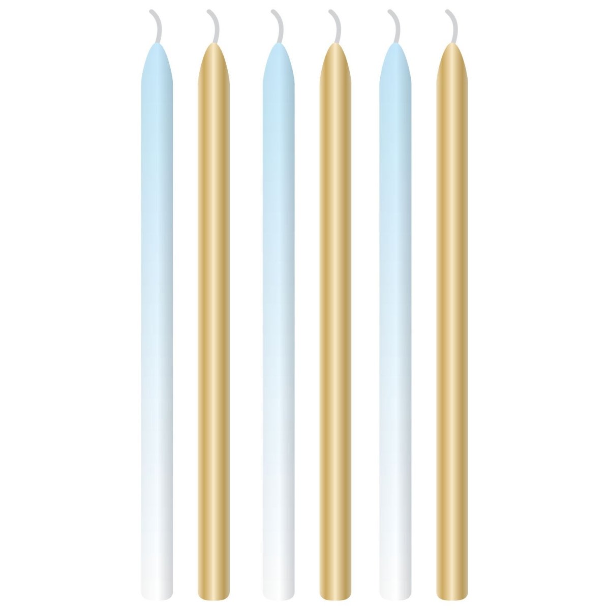 Bougies bleu clair or 12cm 6pcs