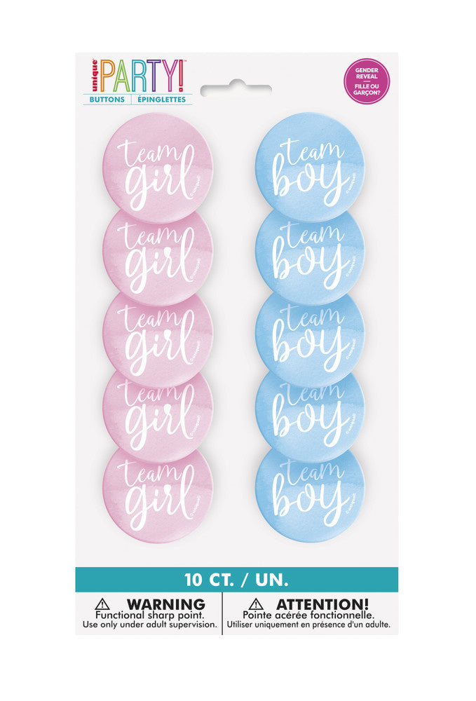 Boutons de révélation du sexe Team Boy et Team Girl 3cm 10pcs