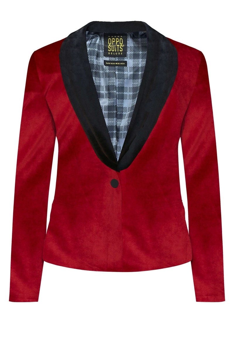 Sophistiquée et élégante tout en étant facile à porter : cette veste de dîner en velours bordeaux avec un revers en foulard noir est un article que toutes les femmes devraient avoir dans leur garde-robe. La veste OppoSuits de luxe, douce et lisse, sera ta meilleure amie tout au long des fêtes de fin d'année (et au-delà - elle est intemporelle).