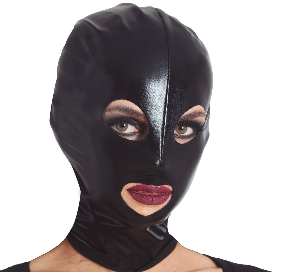 Ajoute un détail cool à ta tenue de déguisement avec cette cagoule en vinyle noir. Idéale pour les fêtes à thème, le carnaval, le théâtre ou comme accessoire de divers costumes.
