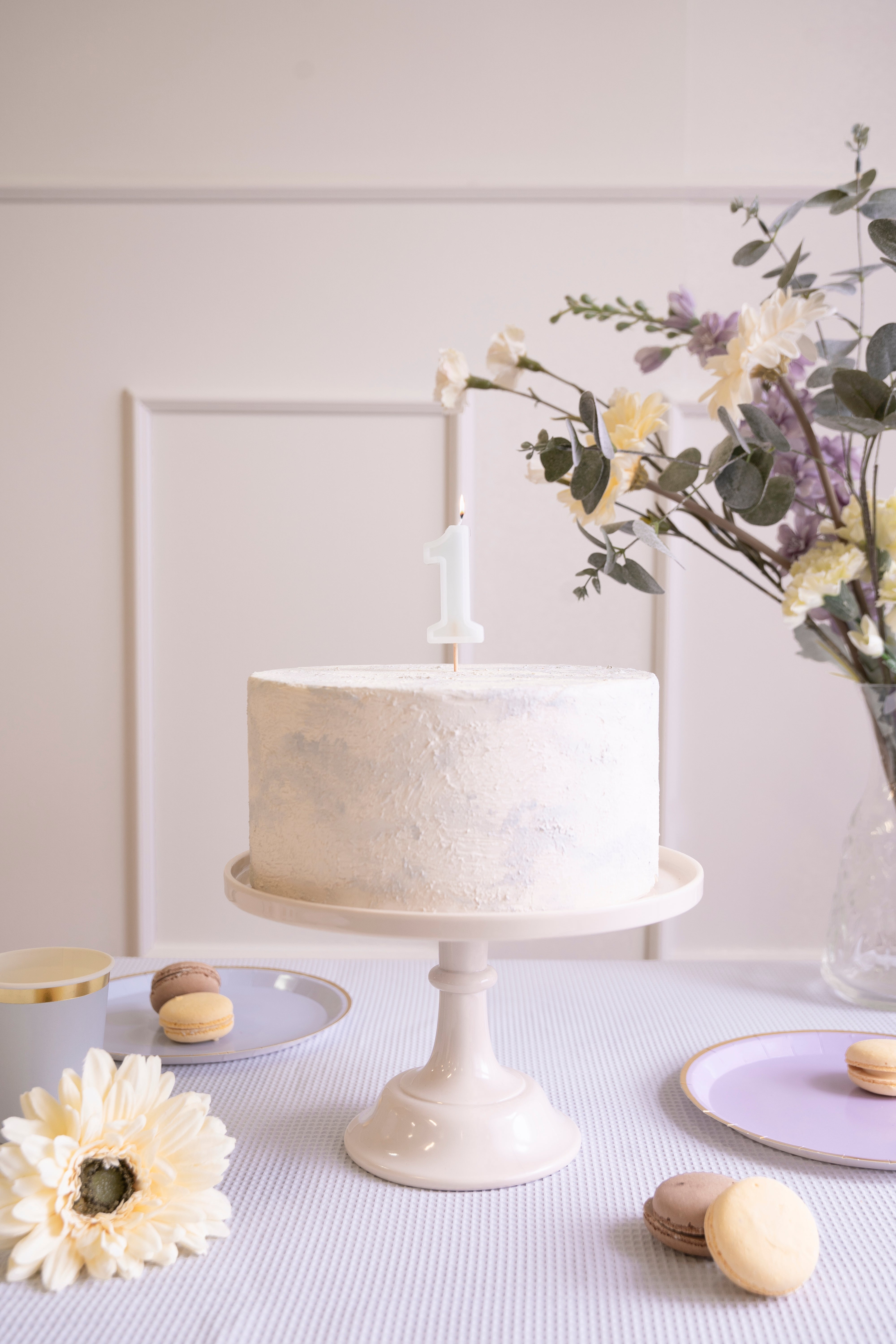 Bougie d'anniversaire numéro 1 de couleur menthe claire.