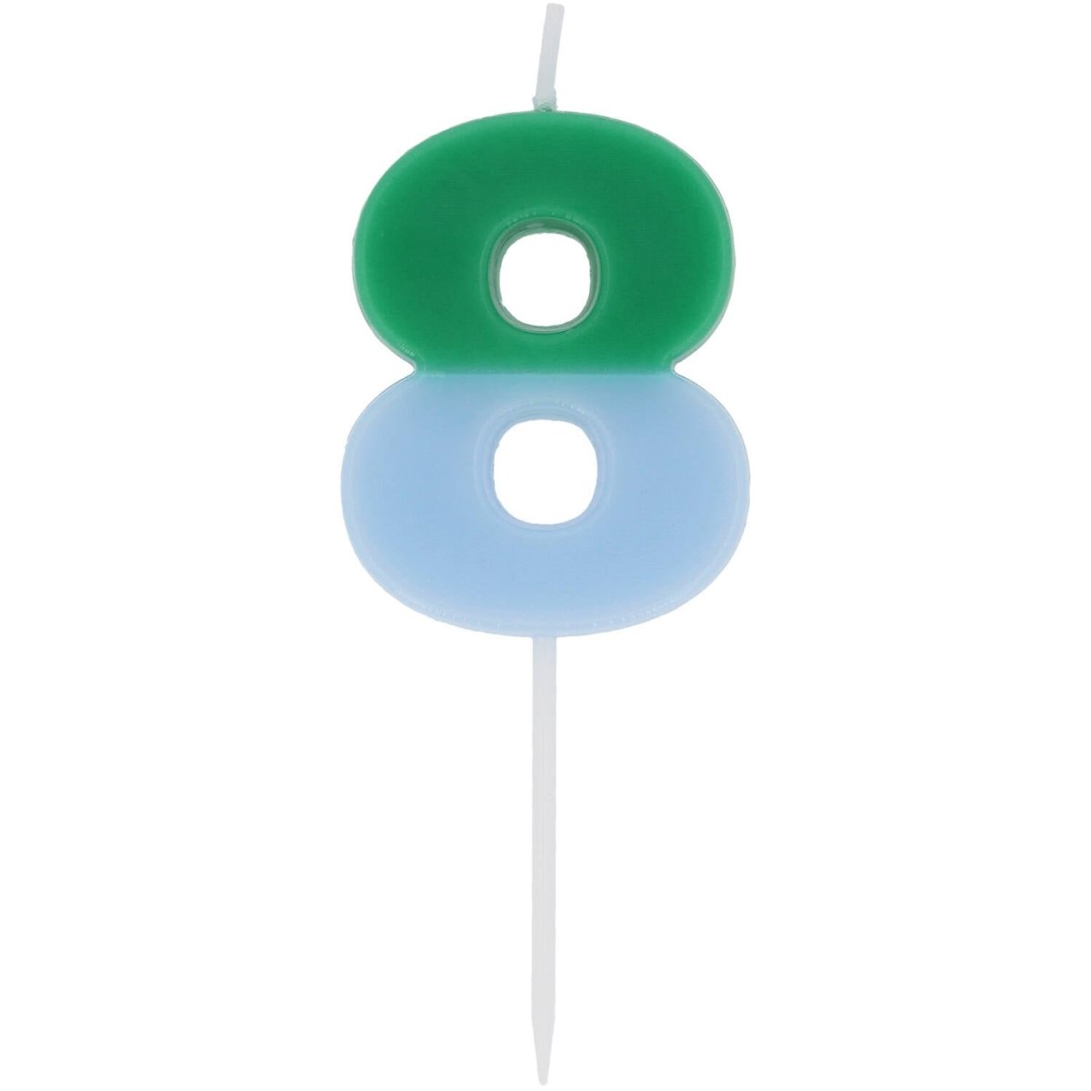 Comme une célébration sur le gâteau ! Bougie - Stripetastic - Numéro 8. Contenu : 1 bougie numérotée. À utiliser par exemple lors des fêtes/occasions suivantes : Anniversaire, Fête des enfants, Anniversaire. Cette bougie a la forme du chiffre 8. Le haut est violet foncé et le bas est rose clair. Cette bougie mesure environ 5 cm de haut et 8 mm d'épaisseur. La longueur totale de la bougie (y compris le piqueur, sans la mèche) est d'environ 9 cm. Cet article est fabriqué en cire.